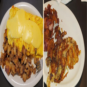 Scrapple Egg and Cheese Sandwich Side of Home Fries